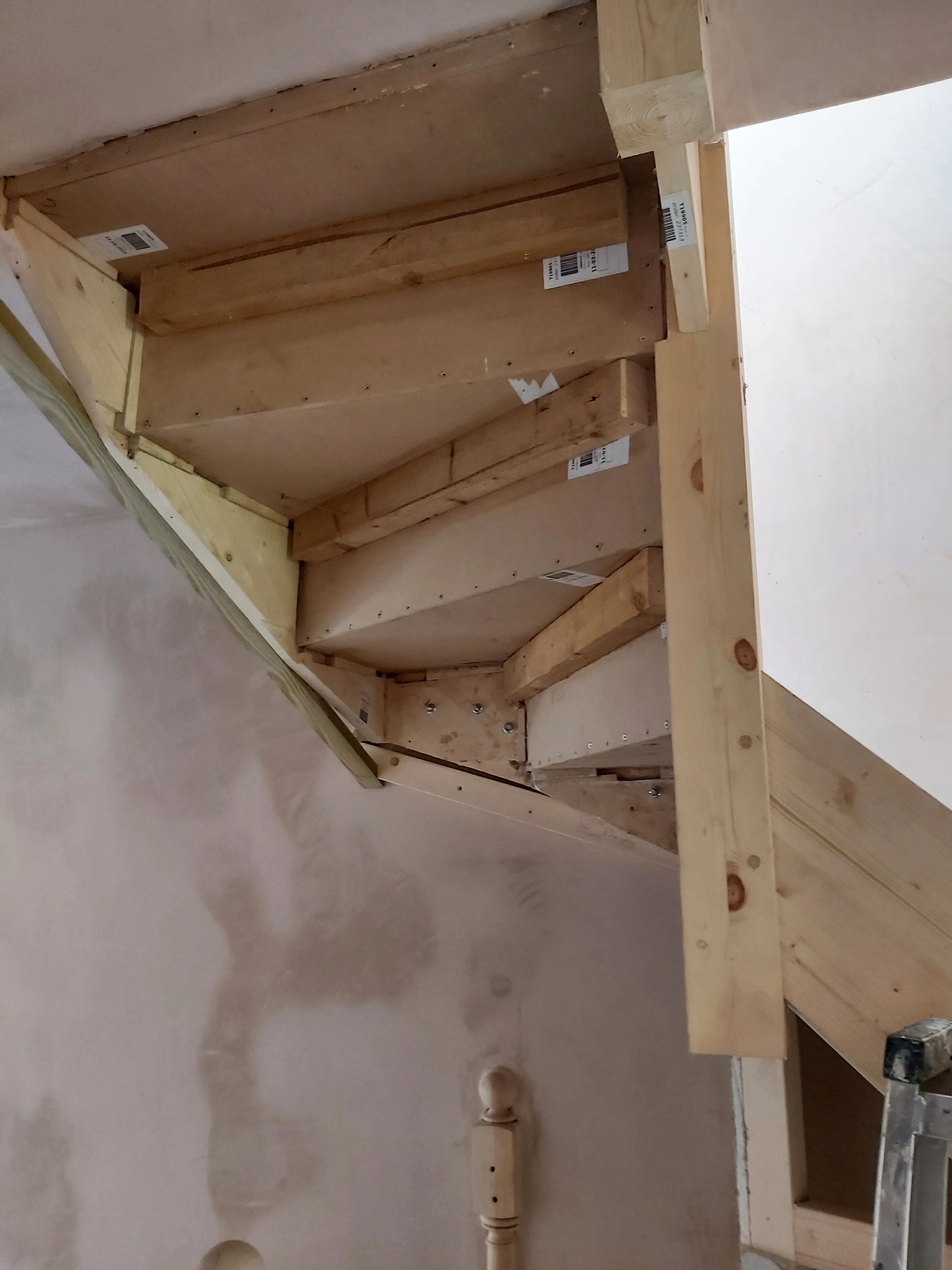 Awkward understair bulkhead boxed in plaster boarded and skimmed.